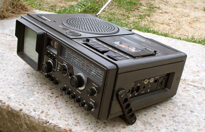 С такой богатой биографией, как говорится, сам Бог велел проявить инициативу и объединить переносной телевизор, с переносной же магнитолой.