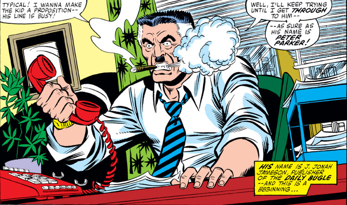 Внезапно у Питера звонит телефон. На том конце провода – Мадам Паутина. Она же ясновидящая, сразу увидела и тайную личность Человека-Паука, и его номер телефона. Мадам Паутина утешает Питера – мол, не волнуйся, как раз сейчас тебя намерен кое-кто устроить к себе на работу. Хотя тебе, возможно, это не понравится – но без денег не останешься. А тем временем Джей Джона Джеймсон младший, глава «Дэйли Бьюгл», названивает Паркеру и бесится, что у него телефон занят – но клянётся, что дозвонится до него и примет на работу.