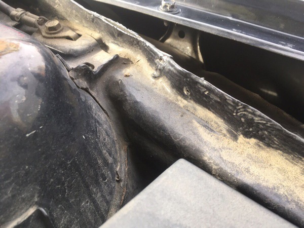 Дабы долго не рассказывать: зазор между передней частью обеих лонжеронов и усилителем бампера...внимание: 0.8-1 СМ !! Лонжероны со складками, которые никто не тянул, а просто закидал шпаклевкой. Сапожок левого лонжерона приварен к последнему электродом, и покрашен прямо поверх окалины!!Левый по ходу движения брызговик имеет явные следы попытки (!) кузовного ремонта. Опять швы, опять шпаклевка...