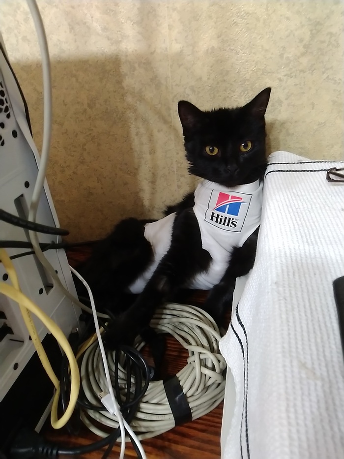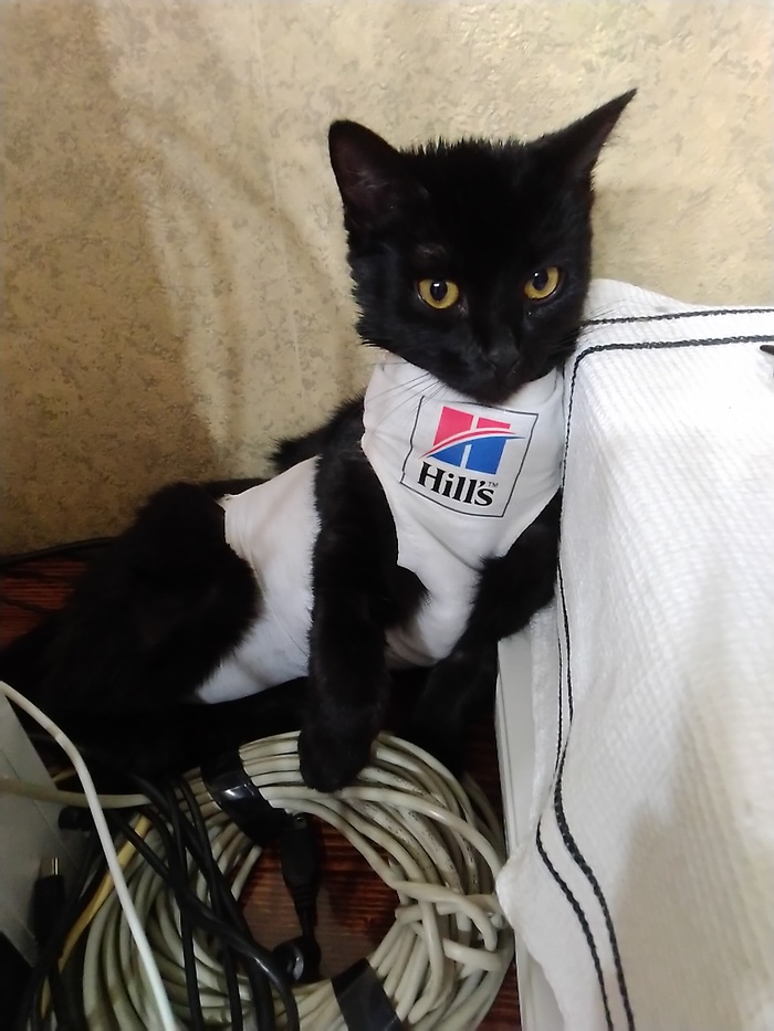 Овариогистероэктомии (ОГЭ), то бишь стерилизации, нам оказалось мало. Неделю назад Maze решила сделать нашу жизнь более насыщенной и слопала какую-то нитку. Где нашла, загадка. Под подозрение попадает ковролин, мешок для строительного мусора и обивка котэджа. В результате был обнаружен «шнурок» торчащий из попы и продукты жизнедеятельности на ниточке. Попытка его вытащить сопровождалась явно неприятными ощущениями у коши, но я тем ни менее попробовал. Смотрю, вроде как вытянул, а может нить оборвалась (сантиметров 10). Затем зародились сомнения, а правильно ли я поступил, возможно я тем самым что-то повредил в кишечнике. Звонок ветеринару, рассказал историю, спросил, надо ли бежать в ветклинику. Меня спросили про симптомы, нет ли крови или рвоты. Ничего такого не было. Сказали, наблюдайте, бежать никуда не надо. На следующий день снова была обнаружена торчащая из попы нитка. Пошли в ветклинику. В итоге, доктор отрезала 3 см и, как она сказала, там еще оставалось сантиметров 7, дальше ее палец не доставал. Укололи Ацилоком и залили в кошь вазелиновое масло. В процессе вливания масла, Мэйз откусила кончик шприца, чем весьма удивила ветсестру и ветеринара. С надеждой, что нитка смоталась в клубочек и выйдет сама, мы пошли домой. В противном случае, нам предстоит операция. А если учесть, что через неделю я улетаю в отпуск, это не самое радостное, что может произойти. Нашел зоогостиницу при ветклинике, сегодня едем посмотреть, как она выглядит на самом деле, а не на картинках на сайте.