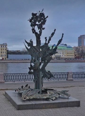 Но это ошибка, Нобели в этом здании никогда не жили, они снимали недалеко расположенный особняк Писаревых, разобранный перед войной для переезда в Новую Деревню и сгоревший в буржуйках во время Блокады (сейчас на этом месте очередной БЦ, коими так славна Петроградская набережная, перестроенный из корпуса завода «Вибратор» (строившегося вообще как музыкальный техникум)).
