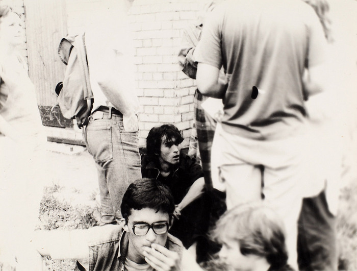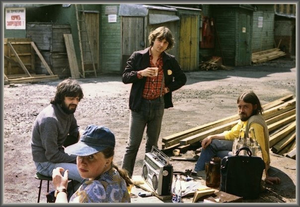 Выше приведена фотография Андрея «Вилли» Усова, фотографа, «летописца» ленинградского рока, снявшего огромное количество фотографий с музыкантами ленинградского рок-клуба. На фотографии слева направо: виолончелист «Аквариума» Сева Гаккель, жена автора фотографии Анна Усова, Майк — сторож фанерной фабрики, Ульев (?, не удалось найти информацию).
