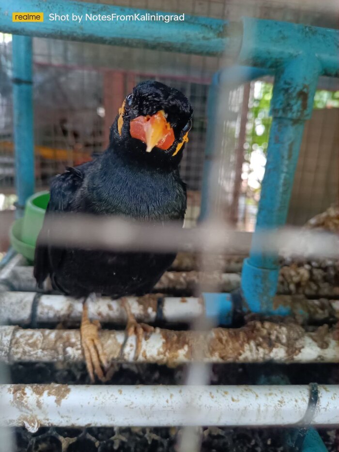 Ее держат в маленькой клетке заводчики сиамских кошек, для развлечения гостей «говорящей птичкой».