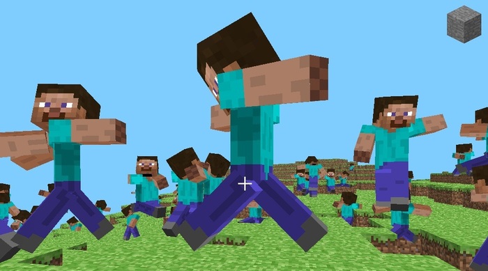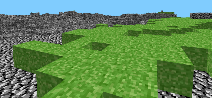 В игре на тот момент существовало лишь два блока — земля и булыжник. Карта генерировалась странно, в мире не проглядывалась логика и все, что можно было делать — это передвигаться и прыгать.