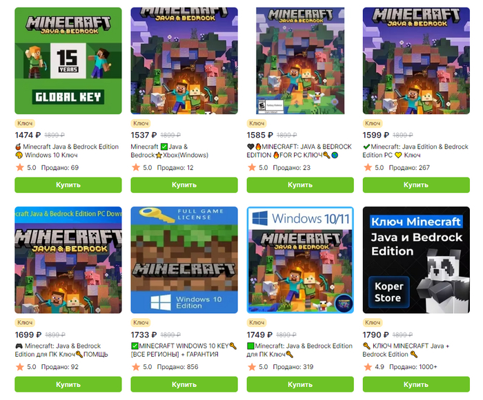 На сайте GGSel нажимаем на поисковую строку и ищем Minecraft. Находим нужный нам товар. Помимо цены рекомендуем обращать внимание на продажи, отзывы и рейтинг продавца.