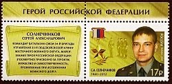 В 2015 году Почтой России выпущена марка из серии «Герой Российской Федерации» с изображением С. А. Солнечникова.