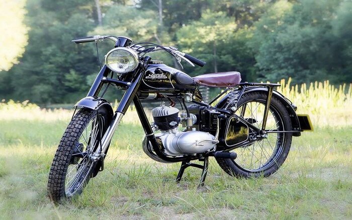В 1930-е гг. шло интенсивное совершенствование мотоциклетных двигателей. Для легких мотоциклов оказался оптимальным мотор в 5 л.с. В конце 20-х такую мощность удавалось получить при рабочем объеме двигателя 300 см3, но к 1935 г., в результате упорного труда и изобретательности конструкторов, – при 125 см3. Мотоциклы с этими моторами сочетали в себе и достаточную мощность, и умеренный расход дорогого в Европе бензина. Не удивительно, что их производством занялись многие фирмы. Например, в Германии на долю такой продукции приходилось в 1935 г. 65% общего выпуска, или 35693 шт. – не мало.
