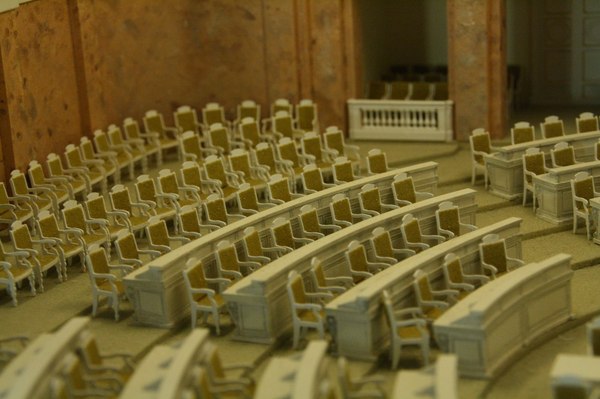 Макет интерьера зала собраний Информационно-Просветительского Парламентского Центра Законодательного Собрания Санкт-Петербурга, который теперь стоит в музее упомянутого центра
