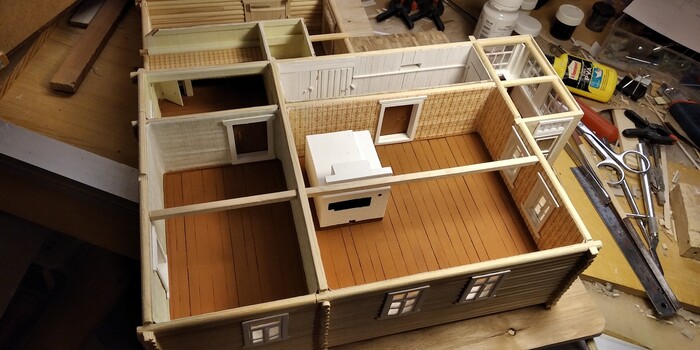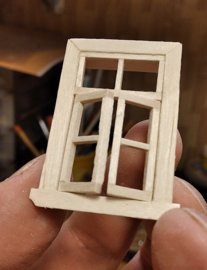 Стекла вставлял в распор, подгоняя каждое по месту. Заморочисто, зато - реалистично. Дополнительно закрепил разбавленным ПВА с помощью рейсфедера.