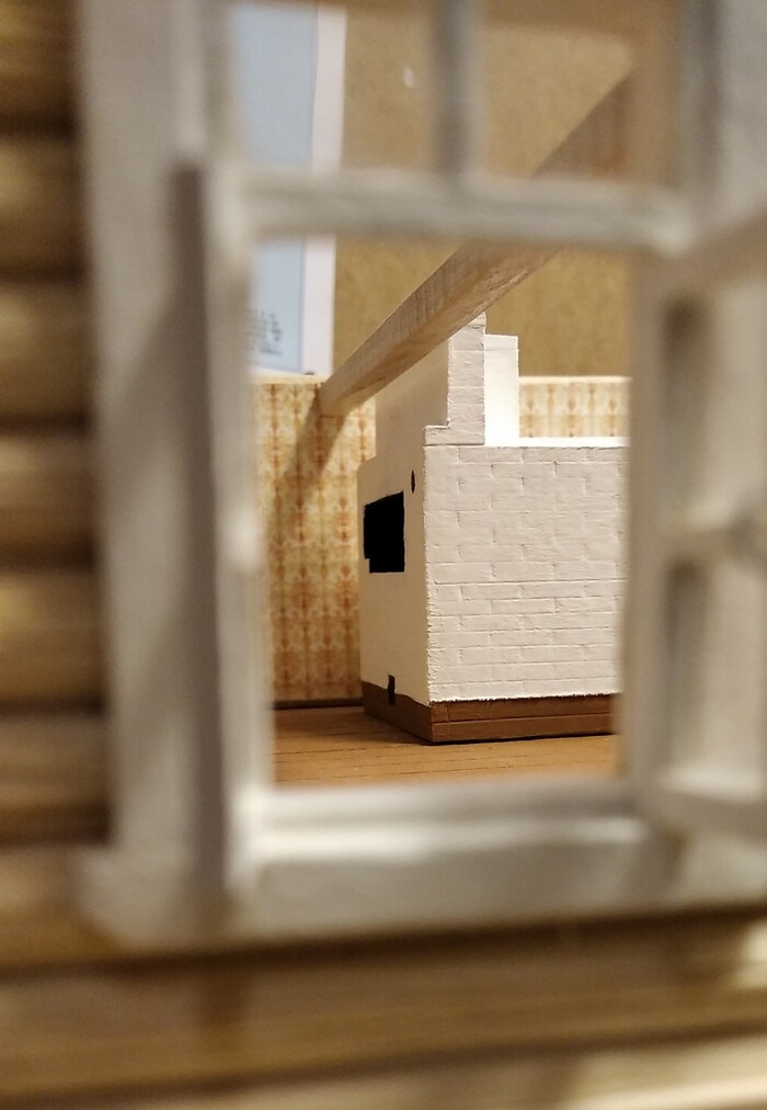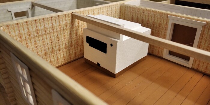 Печку сделал из модельного картона. "Кирпичи" продавливал шилом по линейке.