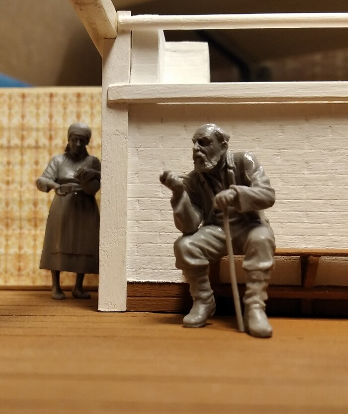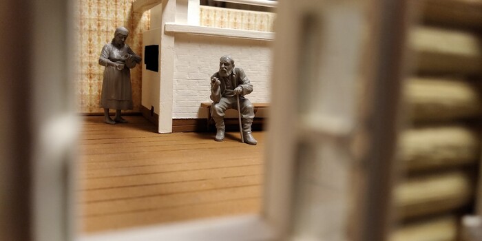 Сначала думал "населить" дом только кошками - их фигурки нашел сразу. Эдакий "кошкин дом". Ну, а когда потом нашел фигурки стариков, решил, что с котиками им будет веселее.