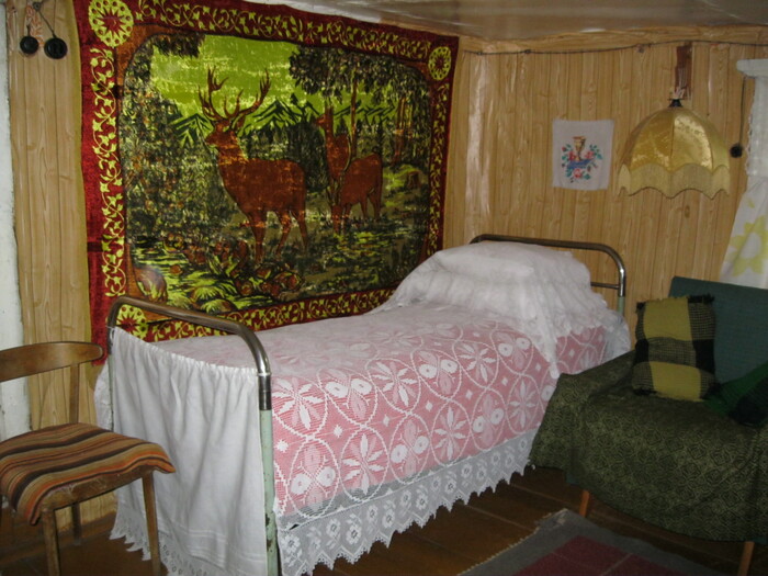 Какой же деревенский дом без металлической кровати и коврика с оленями над ней?