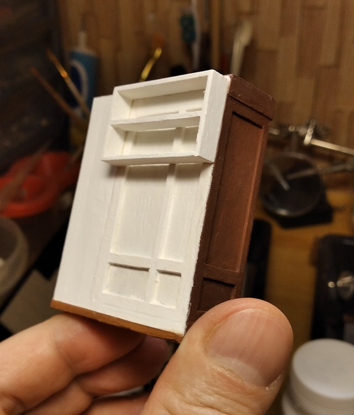 Входная дверь - узнаваемый элемент. Поэтому важно сделать её максимально точно. Пришлось потрудиться и набрать дверь практически точно так же, как если бы я её делал в натуральную величину.