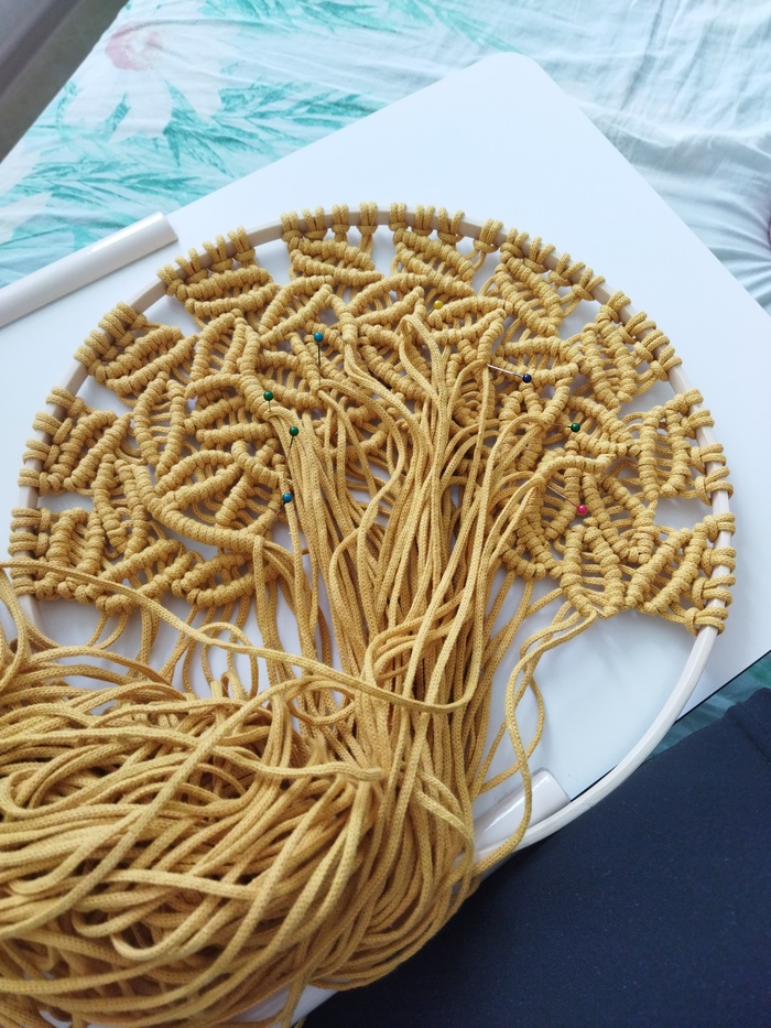 Рукоделие может занимать меня на часы и дни. Когда начинаю осваивать новый вид рукоделия могу попросту не спать вообще. А только творить. Так было с вязанием, плетением, макраме и пр. Это, кстати, уже третье мое дерево жизни. Наверное, друзья всех рукожопов имеют "радость" получать в подарок творения этих самых рукожопов😂 Ну это дерево точно для меня😊 Будет висеть над моим креслом для дум(нет не в туалете😊)