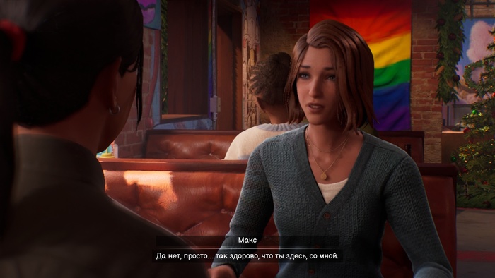 Топорная назойливость темы ЛГБТ. Впоследствии стало легче, впоследствии она даже ушла! По крайней мере, почти. Но поначалу было просто невыносимо! Как будто игра, сценарий поставили себе задачу во что бы то ни стало сосватать героиню то одной, то другой лесбиянке. События, реплики и режиссура, и даже геймдизайн буквально в уши мне кричали, трясли за плечи, цеплялись за руки и за ноги, чтоб только я обратил внимание на идеальную пару для протагонистки! Ну вот же! Вот! Вон там девушка, которая уже готова и влюблена в Макс по уши! Давай, окажи внимание! Давай! Давай! Ответь взаимностью! Горько! Горько! Прайд! Прайд! Прайд! Не? Ну и... Пошёл ты нафиг, цисгендерный. :D %)