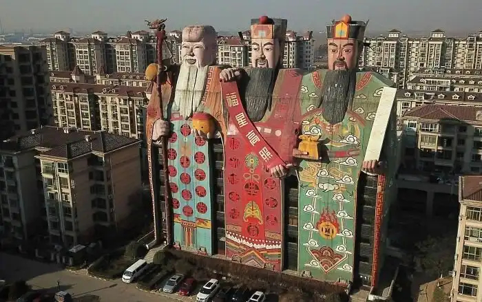 12-этажное здание в городском округе Ланфан, Китай. Выполнено в форме трёх китайских богов удачи: Фу (счастье), Лу (процветание) и Шоу (долголетие).
