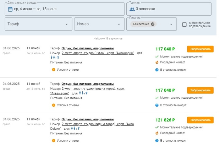 Кстати, этот отель 14 марта сего года на 11 ночей с 4 по 15 июня стоил на 14% дороже- 117040.