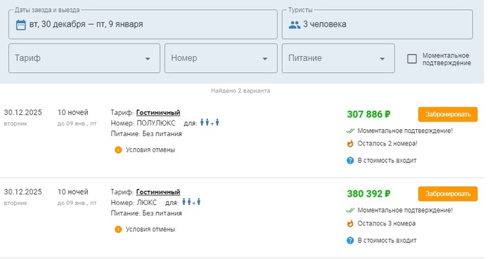 Цена в царском отеле приемлемая: 28 000 за 2 местный стандартный. Можно, правда накинуть чутка и взять номер комфортнее, но мы же смотрим самый дешёвый, значит остановимся на этом варианте.
