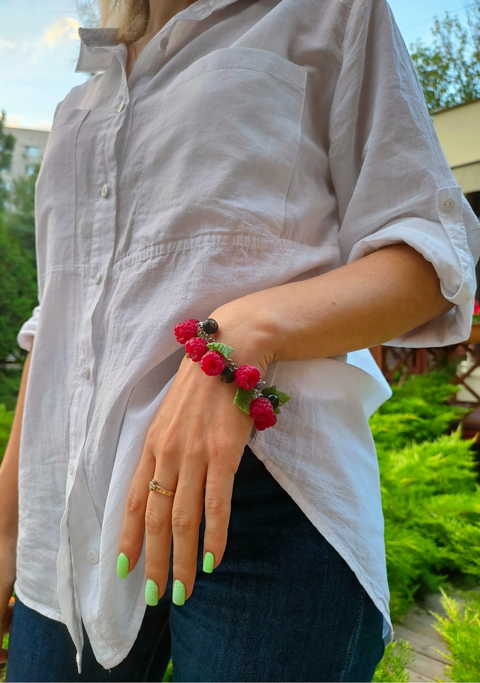 Многим нравятся ягодные браслеты, но не все любят их объёмность. Специально для них был собран такой лёгкий браслет с ягодами в стиле реализм.