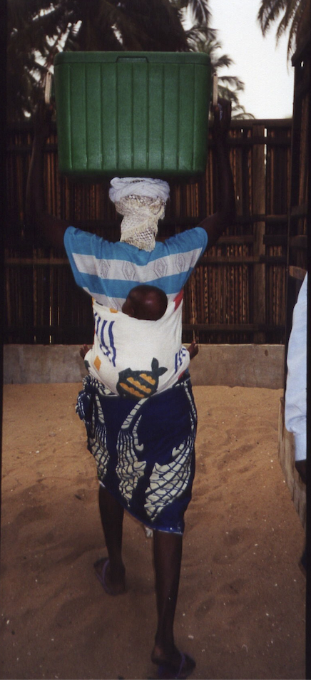 Малышей носят на спине (кусок ткани называют ПАНЬ - это и юбка, и покров для головы, и покрывало) чтобы руки были свободны. Видела малышей привязаных к мамашкам лет до пяти... Поэтому женщина должна быть крупной, работящей.. Но чтобы такую откормить - нужно много богатств (еды).