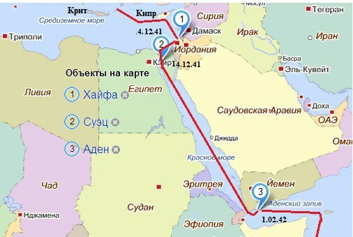 7 января ледокол, взяв на борт лоцмана, двинулся дальше на юг. Вышли в Красное море и встали на якорь на рейде порта. Здесь, по договоренности с англичанами на «Микоян» должны были быть установлены орудия и пулеметы. Но англичане не выполнили этого важного условия договора, лишь установили старую 45-мм пушку, годную разве что для салюта, из которой провели учебные стрельбы. Тогда, чтобы придать ледоколу вид хорошо вооруженного судна, наши моряки пошли на хитрость. У местных туземцев добыли брёвна. А боцманская команда из этих брёвен и брезента изготовила на палубе подобие мощных артиллерийских установок. Конечно, эти бутафорские пушки пользы не принесут, но при встрече с вражеским кораблём страху на него могут и нагнать.