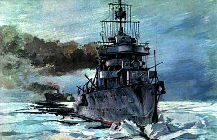 Прозвучал сигнал боевой тревога и все разбежались по своим местам. Огромный, тихоходный и безоружный ледокол не имел ни малейших шансов уйти от двух быстроходных катеров, каждый из которых имел по две торпеды.