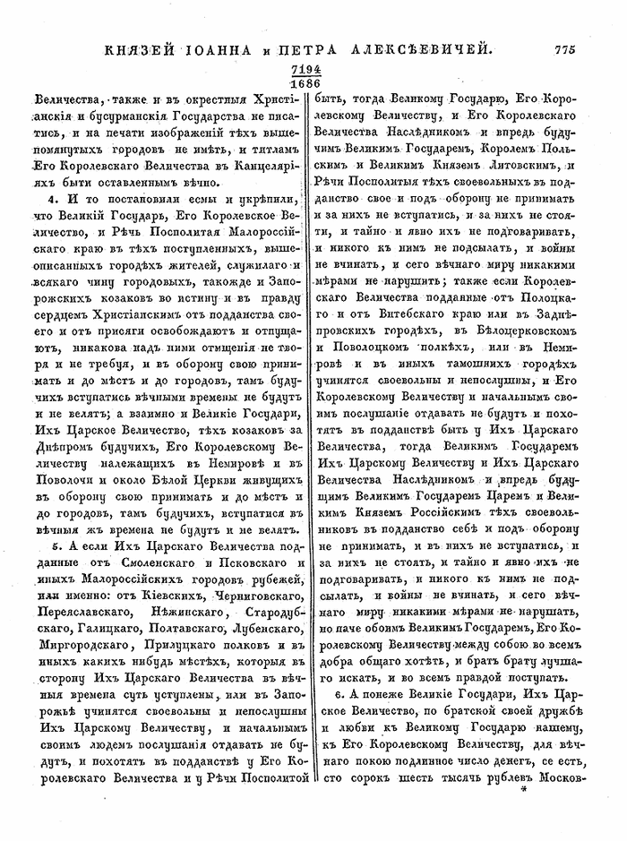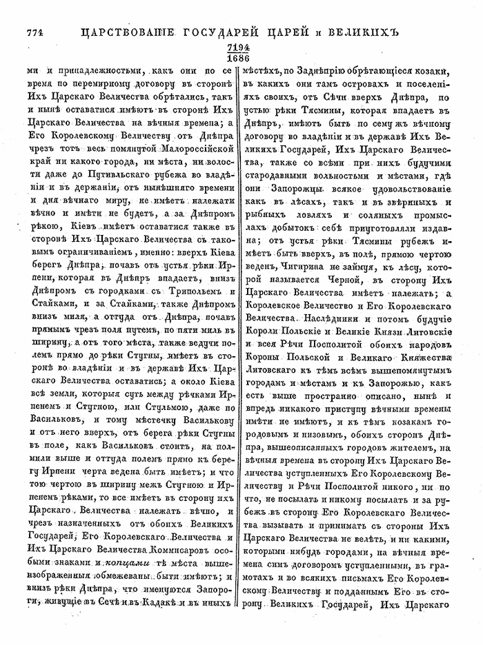 Выдержка из трактата о заключённом 26 апреля 1686 года в Москве между полномочными польскими послами с российскими боярами мирном договоре — «О вечном мире между обоими государствами», стр. 773 - 778