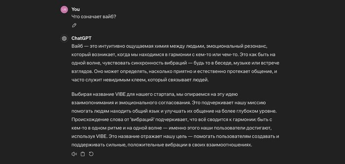 VIBE – новое имя для нашего продукта оказалось прямо перед носом. Это было то ровно слово, которое мы все используем чуть ли не каждый день: вайб, вайбить, ловить общий вайб.