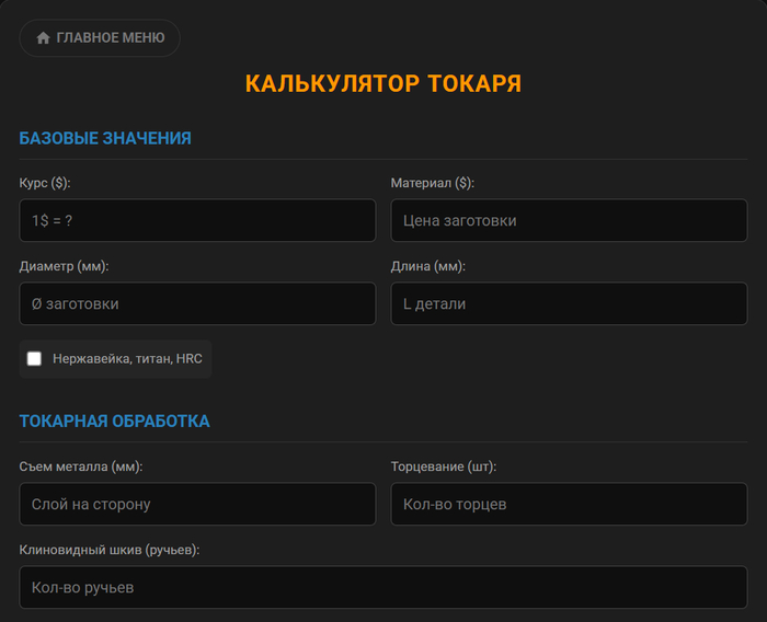 В итоге: Токарный модуль считает ценность изделия, а не время изготовления. Он защищает мастера от демпинга на сложных, но быстрых операциях. И защищает заказчика от оплаты вашей медлительности на простых.