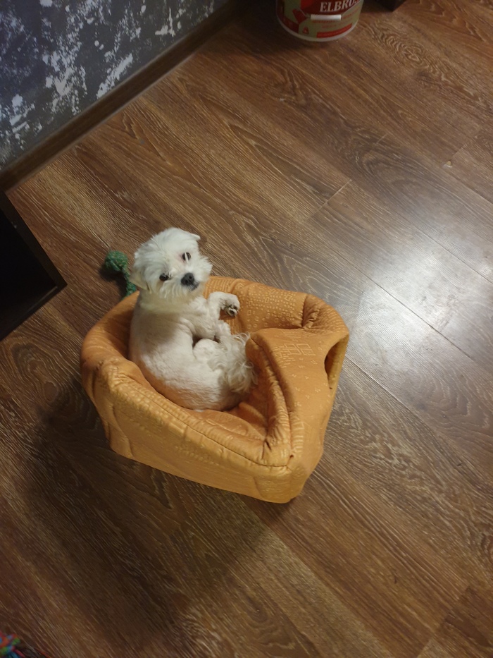 4. Игра «Конфетки». Берем квадратики бумаги (снова можно использовать туалетную бумагу) и закручиваем в них по корминке или несколько корминок. И разбрасываем эти «конфетки» по комнате (можно всё сложить в коробку, но будьте готовы к тому, что бумага всё равно будет разбросана по комнате). Единственное «но»: я советовала бы использовать именно сухой корм, а не натуральные продукты – «натуралка» дает сок, который пропитывает бумагу, жадная собака может проглотить «конфету» вместе с оберткой.