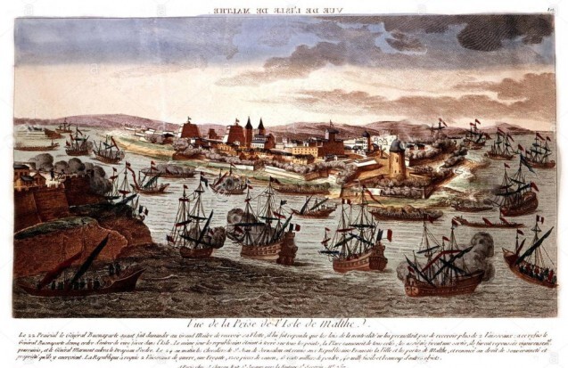 9 июня 1798 года огромная французская эскадра, состоявшая из 13 линейных кораблей, сотни судов и 35 000 солдат, появилась у берегов Мальты. Наполеон направлялся в Египет, чтобы ослабить британское влияние на Востоке. Понимая, что Мальта — это ключ к Средиземноморью, было решено захватить ее.