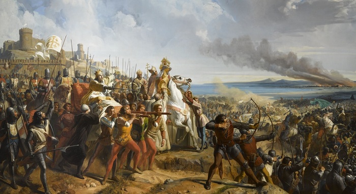 Пехота королевского войска, увидев наступление сарацинов, поднялась на вершину горы, и отказалась сражаться, несмотря на команду короля, мольбы епископов и требования баронов.