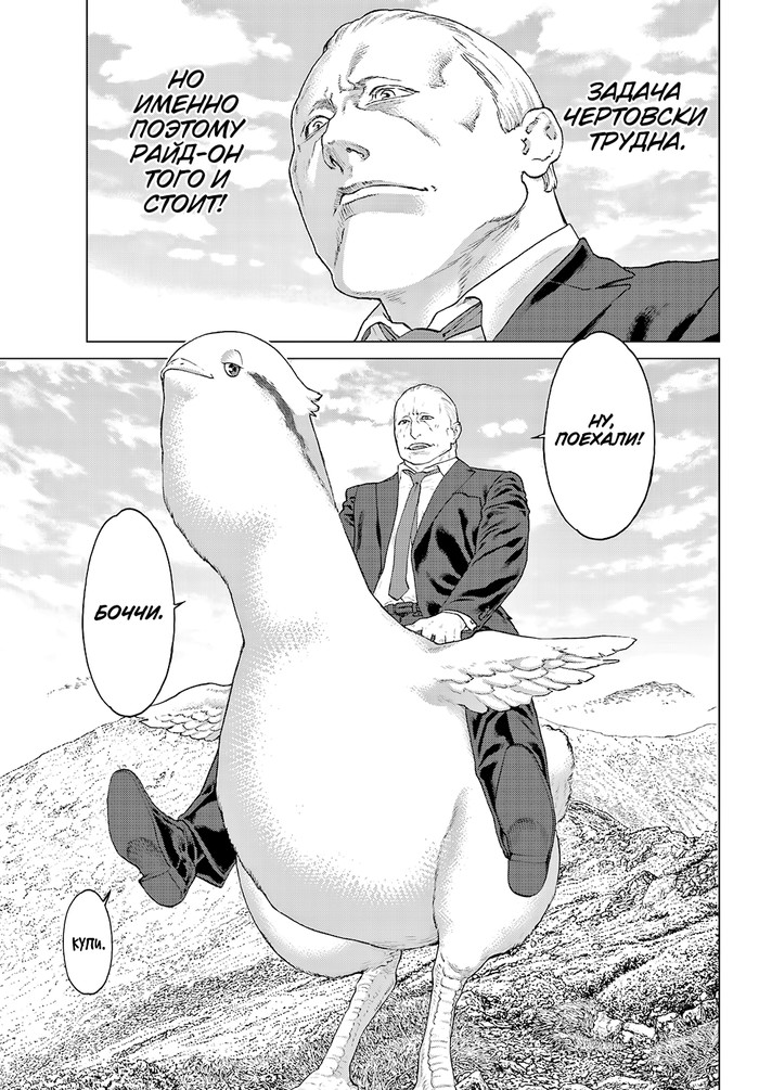 Конечно, остаётся шанс, что оригинальная идея не получит должного развития и останется на одном уровне топчась на месте. Герои будут двигаться от одной точки к другой и время от времени кататься на новых зверях. Возможно такая идея, о могучем президенте, попавшем в другой мир, не выдержит испытания временем и рано или поздно наскучит читателям и закроется, так и не завершившись, как это уже было с сотнями манг. Но лично я уже получил удовольствие от произведения и считаю показанный концепт великолепным и заслуживающим внимания. А теперь остаётся только ждать новых глав, которые, увы, выходят, не так часто, как хотелось бы.