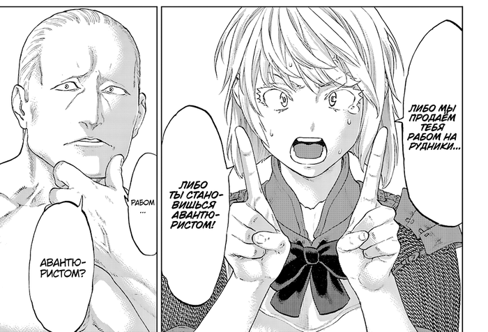 Сразу извиняюсь за эти спойлеры и за все последующие но по другому об этом лубке рассказать не получится. Тем, кому же стало интересно, советую идти читать, ибо лучше ох*** удивляться от местных фишек по ходу сюжета, чем видеть их тут. (на рецензию это всё равно мало тянет, скорее зазывание к прочтению)