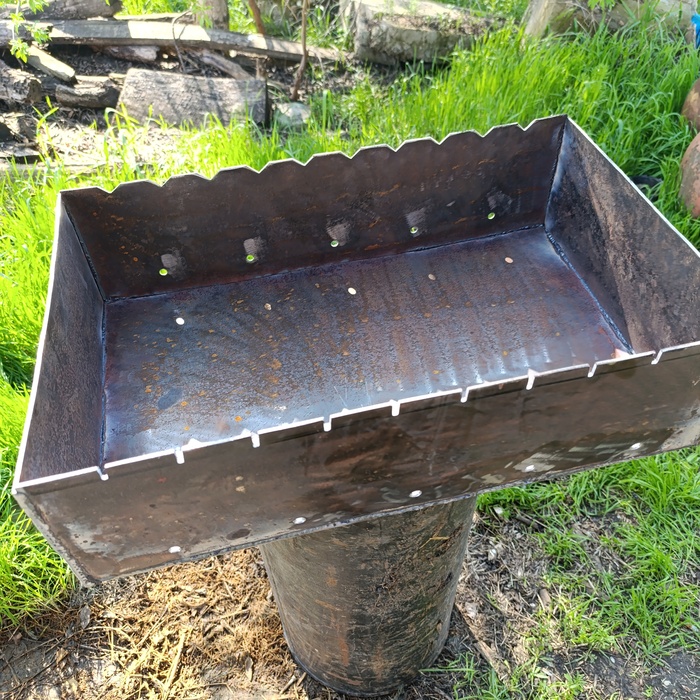Поработал ещё немного над своим Царь-мангалом. Весит он теперь точно не менее 70кг без подставки. Продухи пока делать не стал. Попробую пока так.