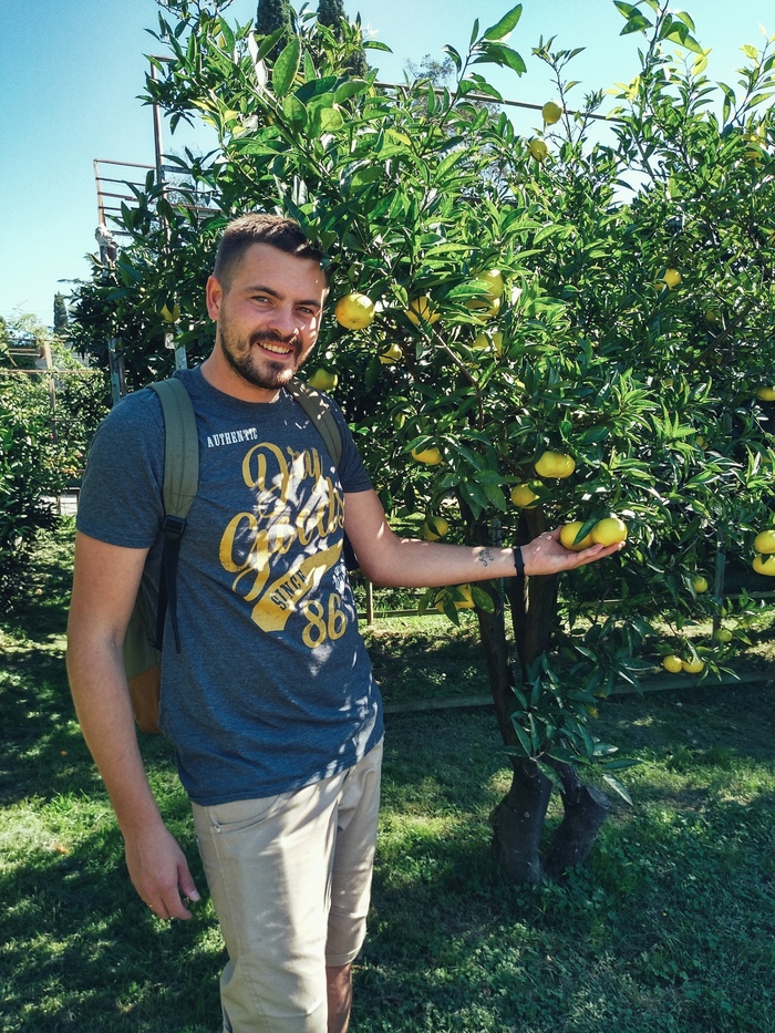 День 5. Так как я увлекаюсь цитрусовыми, выращиваю их дома, то мне было интересно посмотреть на цитрусовый сад и таковой в Сочи имеется. Находится он в самом Сочи и недалеко от морского вокзала. Доехали примерно за час и 70р с человека. Сначала пошли к морскому вокзалу, там все зазывают покататься на яхтах, ну и мы согласились) за 800р с человека мы плавали на уютненькой яхте в открытом море 45 минут, видели дельфинов близко-близко. Вроде и видели их уже сто раз, но всегда это вызывает какой-то детский восторг. В общем познавательно, нам понравилось. Далее пошли на остановку, проехали немного, потом прошли и попали в тот самый цитрусовый сад, кому интересно это сад-музей "Дерево дружбы", но деревьев там много, разных сортов и висели уже совсем желтые. Место душевное, я был просто в восторге. Непривычно северянам, после березок и кленов видеть мандарины, лимоны, грейпфруты которые растут прямо так просто, как у нас яблони. Вход в музей охраняет бабулька и собирает по 100р с человека. Чисто символическая плата, на поддержание сада я считаю. На этом решили закончить и поехали в отель, чтобы напоследок искупаться в море, это был наш последний день.