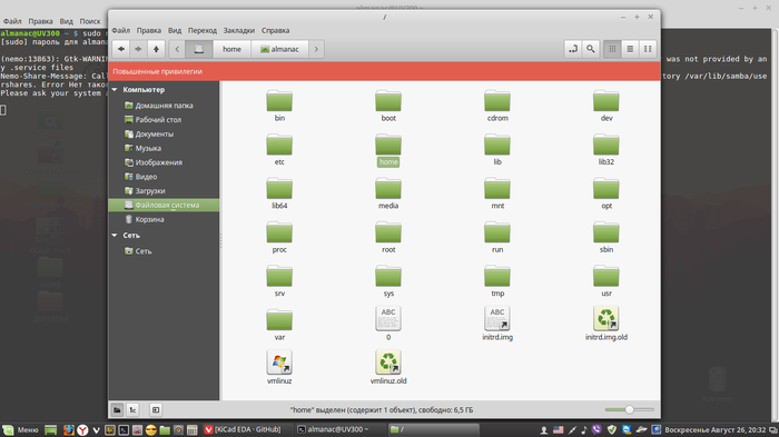 Далее снова открываем терминал и открываем файловый менеджер в режиме суперпользователя. У меня на машине стоит Linux Mint с файловым менеджером Nemo, так что будьте внимательны. Так что вводим в терминале sudo nemo.