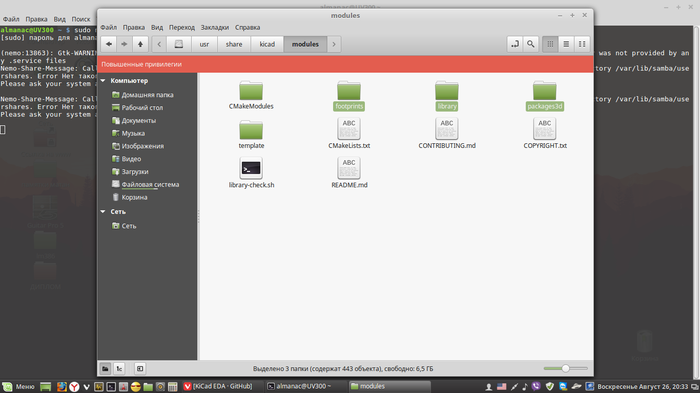 Заходим в каталог .../usr/share/kiсad и создаем там папку modules.