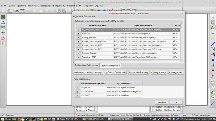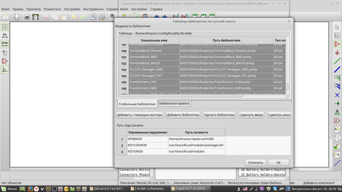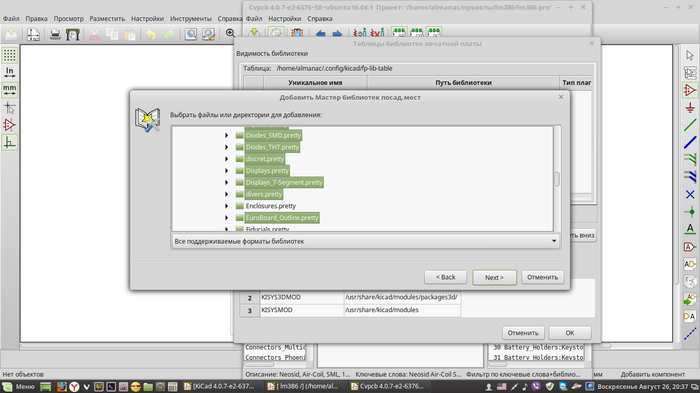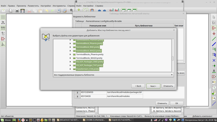 Далее открываем каталог .../usr/share/kiсad/modules/footprints и выбираем нужные библиотеки: