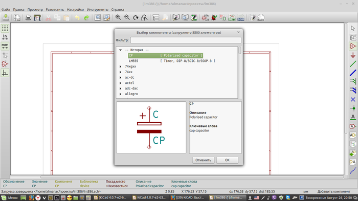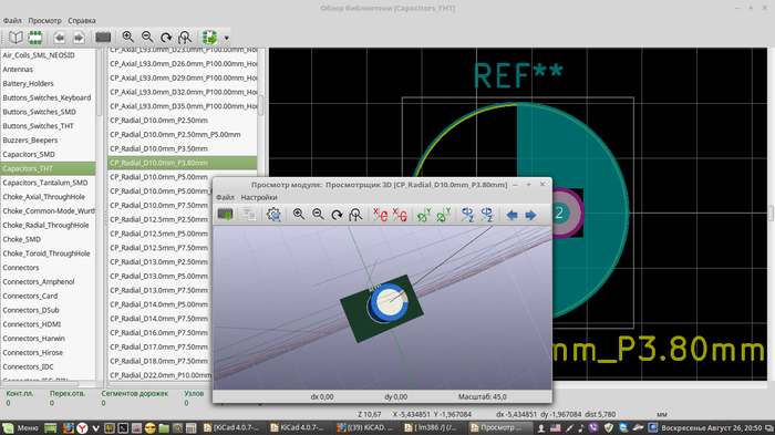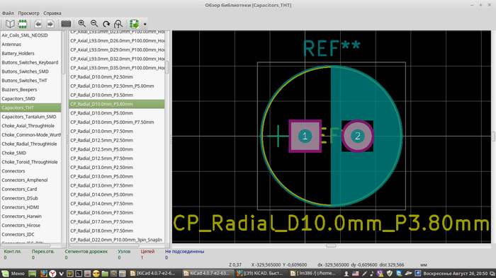 Проверим бибилиотеки посадочных мест на примере электролитического конденсатора:
