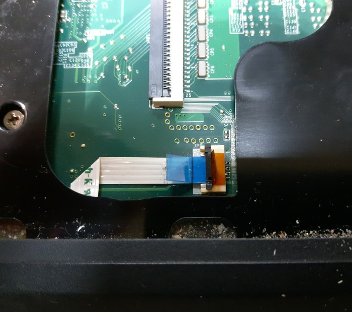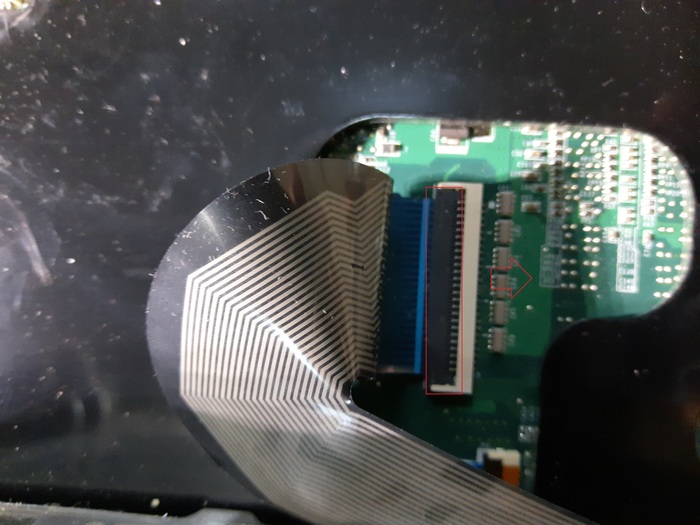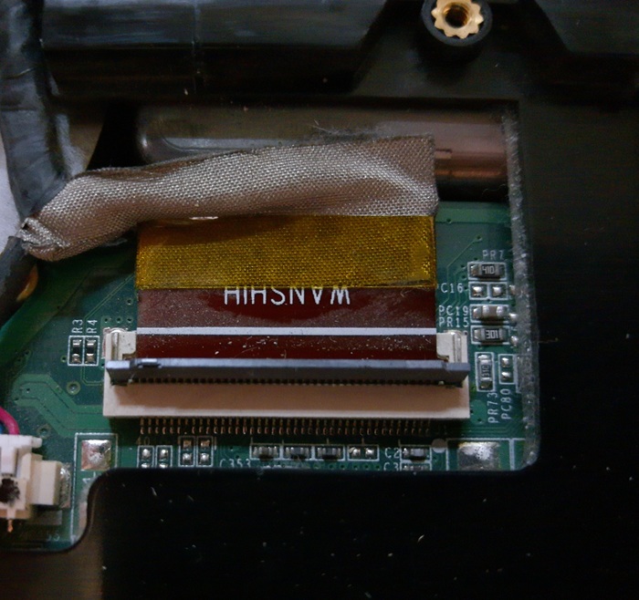 Отсоедините шлейф клавиатуры, дисплея, тачпада и блока кнопки питания.