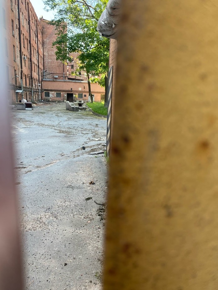 Конечно, в нас заиграло любопытство и мы, не долго думая, проникли на территорию мануфактуры. Сначала, думали, что нас кто-нибудь заметит. Прибежит и в лучшем случае, выгонит, а в худшем вызовет полицию. Но там не было НИКОГО, кроме нас. Стало еще страшнее, от ветра дрожал забор и почему-то казалось, что башня вот-вот обрушится на нас. Но мы справились со страхом, потому что заснять годный контент очень хотелось.