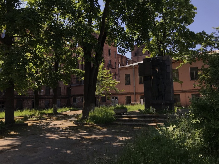 В небольшом садике стоят памятник и клумбы, с почти распустившимися цветами. От этого стало еще жальче тех, кто здесь работал. Люди благоустраивали свое рабочее место, делали его уютным, сажали цветы, ничего не подозревая.