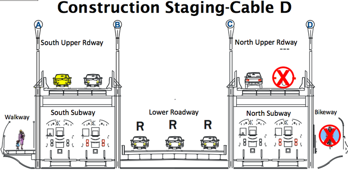 На протяжении многих лет, интенсивное движение метро вызвало значительное скручивание палубы. Максимальные скручивания происходят когда поезд метро начинает пересекать противоположные стороны моста одновременно. В момент одна стороны проезжей части опускается на четыре фута на северную сторону, в то время как другая сторона проезжей части опускается на четыре фута на южную сторону, создавая общую мостовую прогиб до восьми футов.