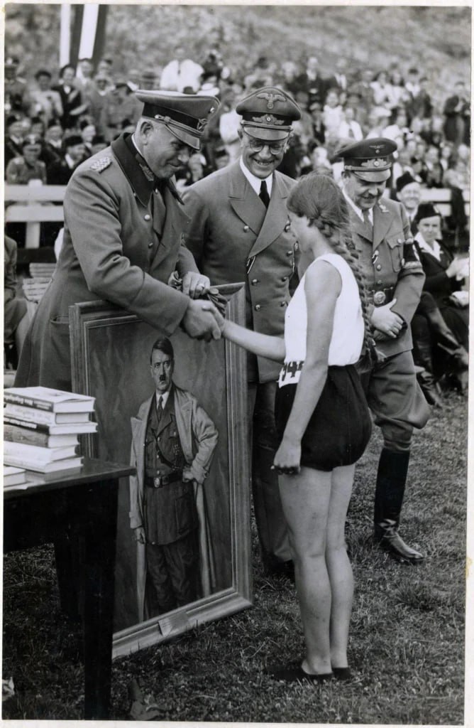21. Голландская спортсменка получает портрет Адольфа Гитлера в качестве спортивного приза. Германия, 1938 год.