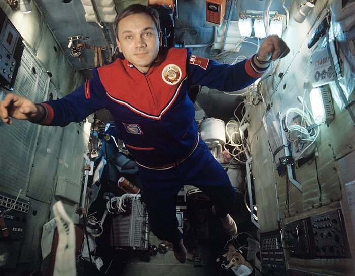 12. Командир экипажа советского пилотируемого космического корабля "Союз-27" Владимир Александрович Джанибеков, прибывший с экспедицией посещения, на борту пилотируемого орбитального научно-исследовательского комплекса "Союз-26" - "Салют-6" - "Союз-27". Январь, 1978 год.