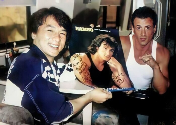 Джеки Чан берёт автограф у С. Сталлоне во время съёмок фильма "Разрушитель", 1993 г.