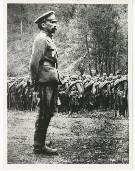 11. Генерал Лавр Георгиевич Корнилов выступает перед войсками.