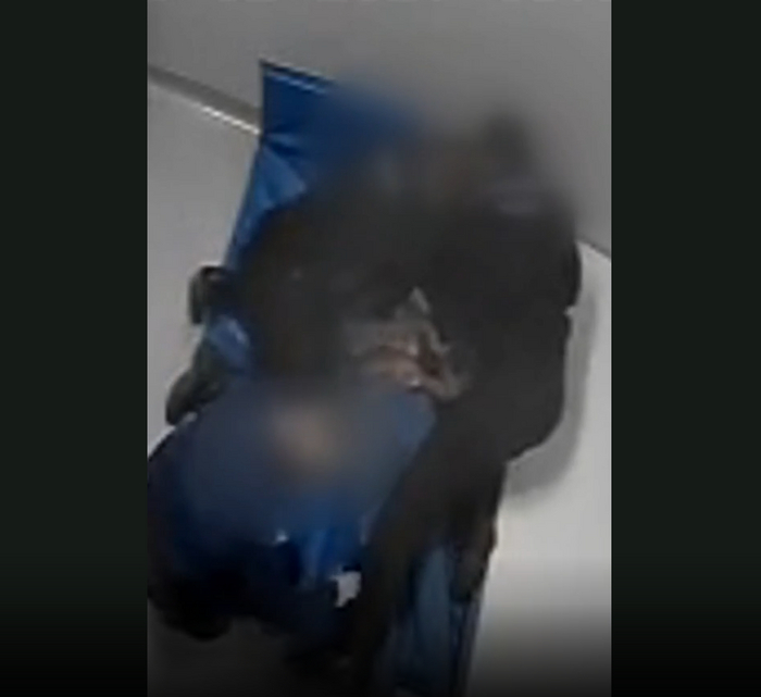 Следующая запись с ней появляется с момента, когда внутренние камеры в участке показывают, как три женщины-полицейские несут её, находящуюся без сознания, в камеру в 3:26. Её руки скованы за спиной наручниками, и её кладут на матрас на полу. После этого её раздевают: снимают штаны, отрезают ей ножницами трусы и топик, снимают лифчик. После чего надевают тюремные шорты, кладут рядом тюремный топик и покрывало, снимают наручники и так и оставляют на матрасе полуголую без сознания лицом в пол. Когда поднимется вопрос, зачем ей меняли одежду, в полиции скажут, что сделали это из заботы о её физическом здоровье.