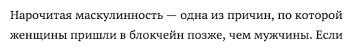 Подобных прекрасных перлов – уйма. Там и про отсутствие женщин на тематических конференциях (потому что хуемрази такие хуемрази), и про купальники, и про скандалы-интриги-расследования. Я настоятельно рекомендую всем и каждому ознакомиться с этой статьей. Вкусно и сытно.